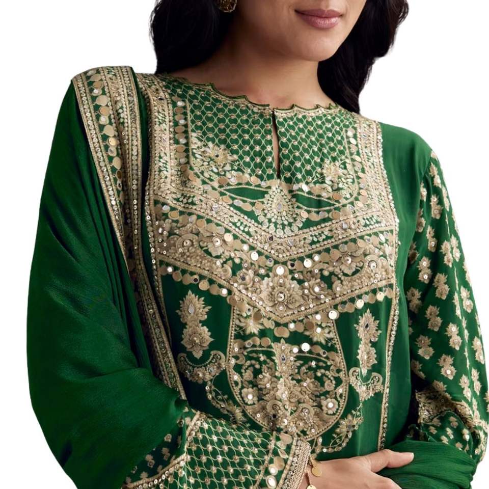 ชุดสูทเครปพาลาซโซพิมพ์ลายสีเขียวเข้มพร้อมคอเสื้อแบบมีรูกุญแจเสื้อผ้าพื้นเมืองสำหรับผู้หญิง