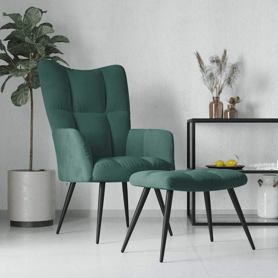 เก้าอี้พักผ่อนกำมะหยี่สีเขียวเข้มพร้อมสตูล โพลีเอสเตอร์ 100% สำหรับห้องนั่งเล่น