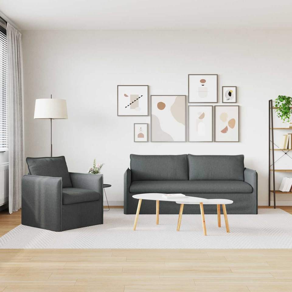 สีเทาเข้ม 196 X 82 X 85 ซม. ชุดโซฟาห้องนั่งเล่นผ้า 2 ชิ้น