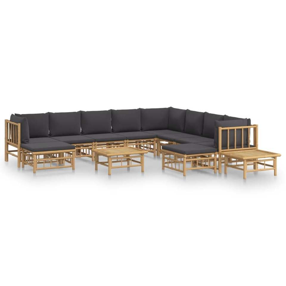 ชุดโซฟาสวนไม้ไผ่สีเทาเข้มพร้อมเบาะผ้าโพลีเอสเตอร์
