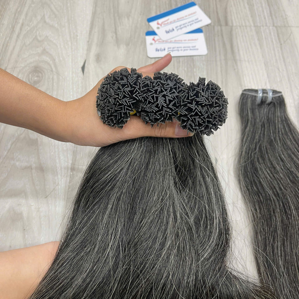 ชุดผมสีเทาเข้มแบบ Double Drawn ปลายหนา ผมแท้เวอร์จินเวียดนาม 100% ชนิด Remy