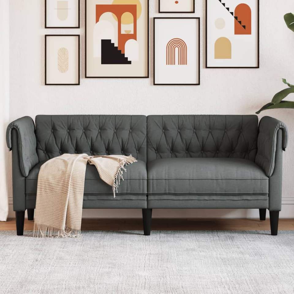 โซฟาเชสเตอร์ฟิลด์สีเทาเข้ม ไม้เนื้อแข็ง ไม้อัด โฟม พร้อมโพลีเอสเตอร์ สำหรับห้องนั่งเล่น