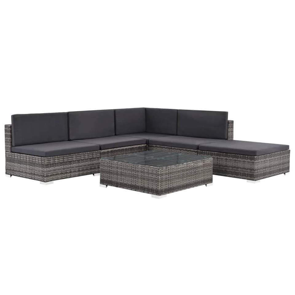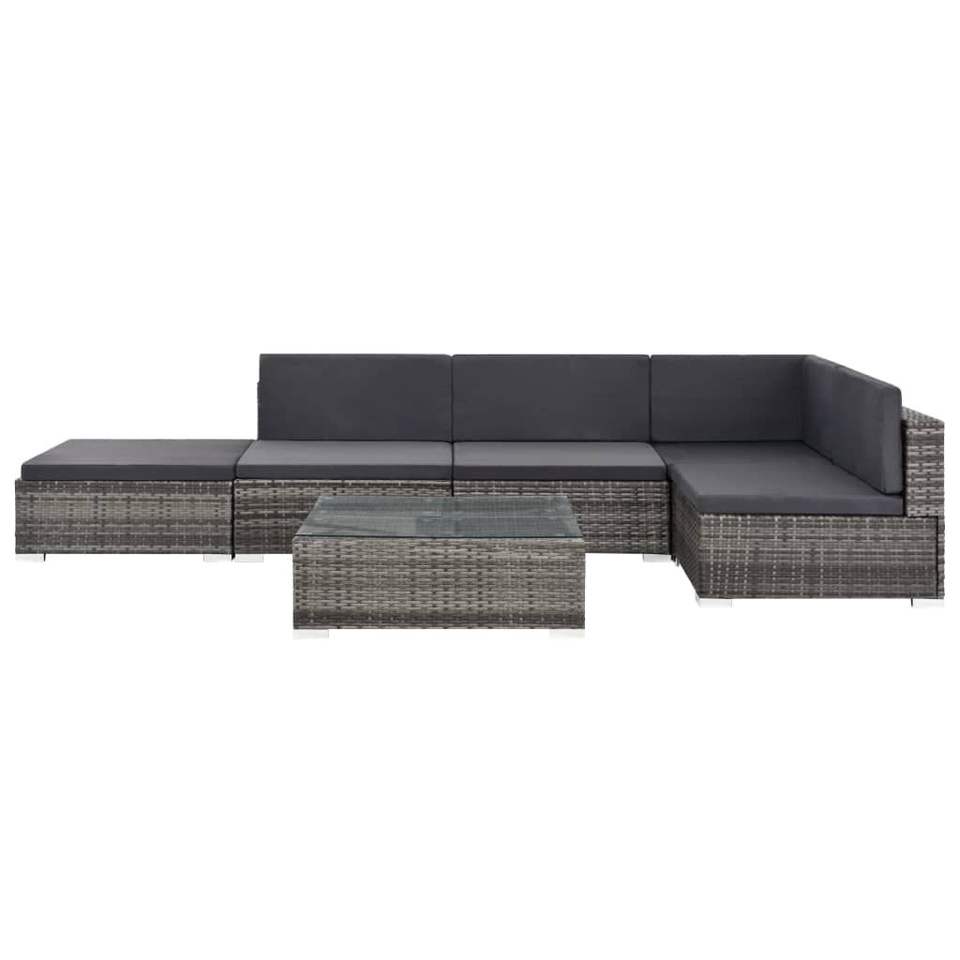 ชุดโซฟาสวนสีเทาเข้มพร้อมเบาะรองนั่ง ทนทานต่อรังสียูวี ทำจากหวาย PE เฟอร์นิเจอร์กลางแจ้ง ดีไซน์ร่วมสมัย กันน้ำ เหมาะสำหรับใช้ในสวน