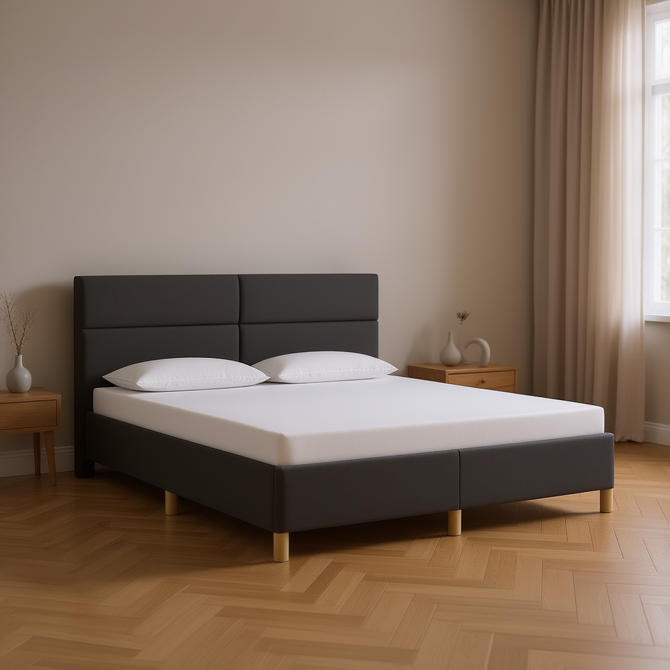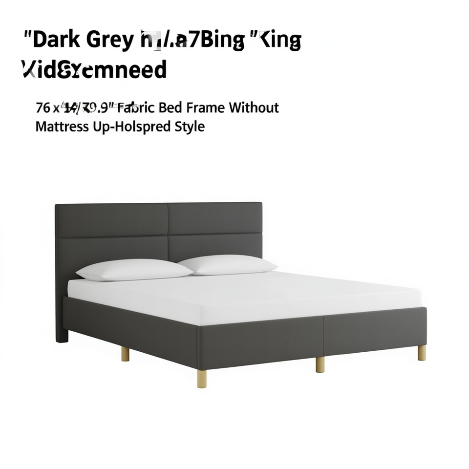โครงเตียงผ้าสีเทาเข้มขนาด 76x79.9 นิ้ว แบบหุ้มเบาะ ไม่มีที่นอน เฟอร์นิเจอร์ห้องนอนสไตล์โมเดิร์น