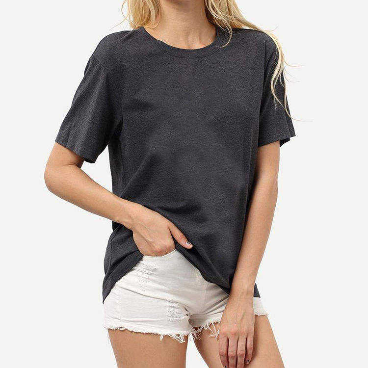 เสื้อยืดครอปผู้หญิงสีเทาเข้ม ทรงลำลอง ใส่สบาย ระบายอากาศได้ดี แห้งเร็ว เป็นมิตรกับสิ่งแวดล้อม เหมาะสำหรับฤดูใบไม้ผลิ แฟชั่นพื้นฐาน