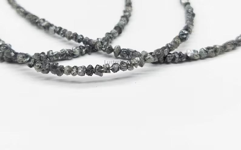 ลูกปัดเพชรดิบสีเทาเข้มเข้มคุณภาพสูงหินอัญมณีหยาบแบบไม่เจียระไนธรรมชาติสุดแฟนซีขนาด2-4มม. 15นิ้วได้รับการรับรองจากบุคคลที่สาม