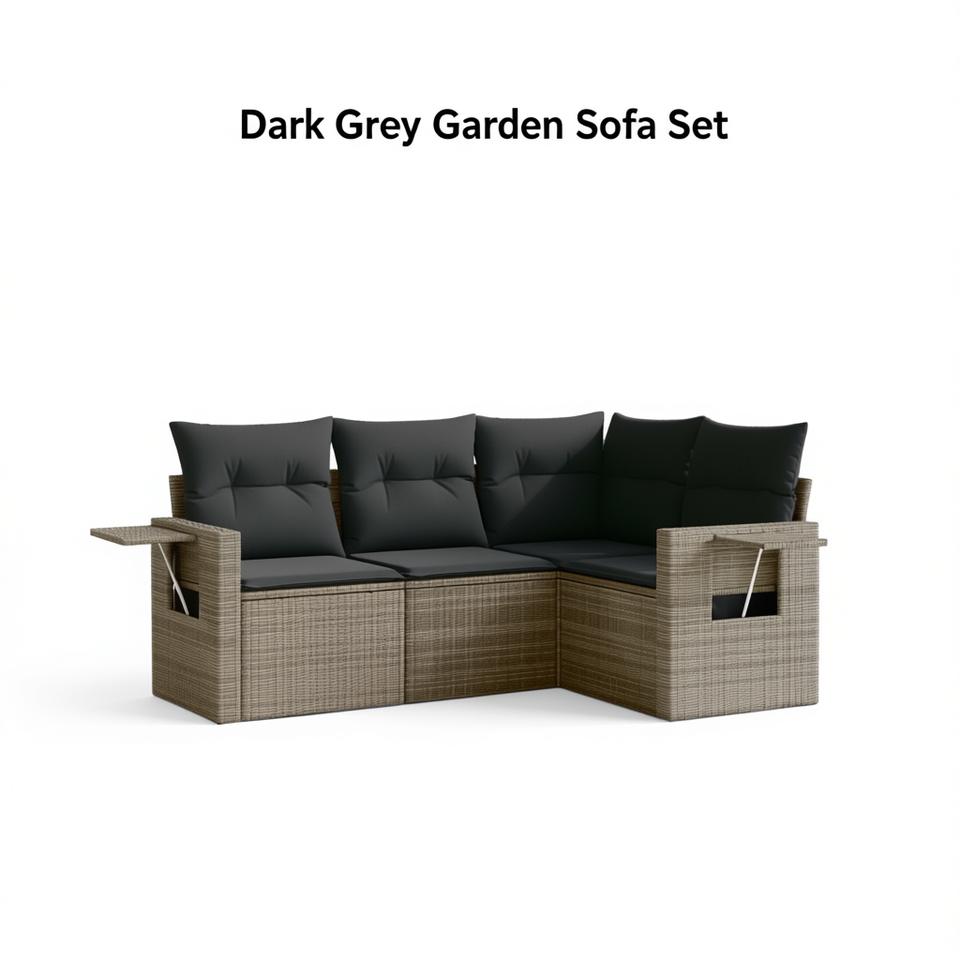 ชุดโซฟาหวายสีเทาเข้มสำหรับสวน 4 ที่นั่ง เฟอร์นิเจอร์กลางแจ้ง ดีไซน์ร่วมสมัย