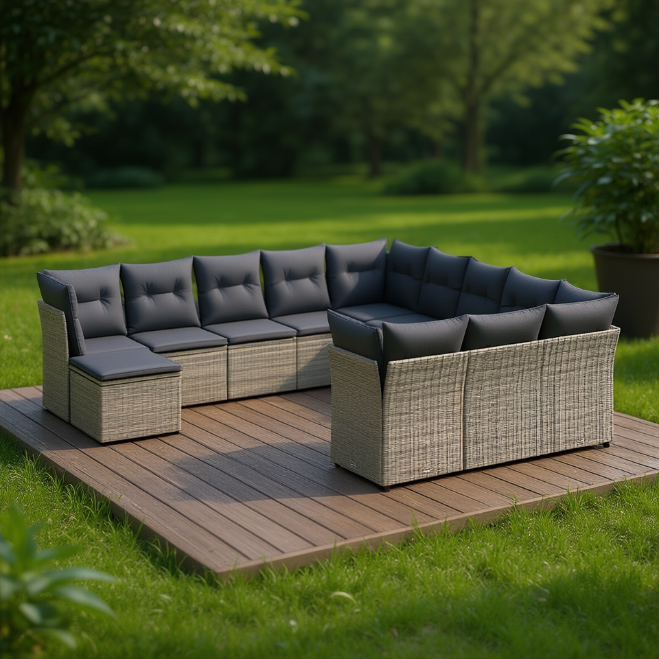 ชุดโซฟาหวายสีเทาเข้มสำหรับสวน 6 ที่นั่ง เฟอร์นิเจอร์กลางแจ้ง ทนทานต่อสภาพอากาศ ดีไซน์ร่วมสมัย