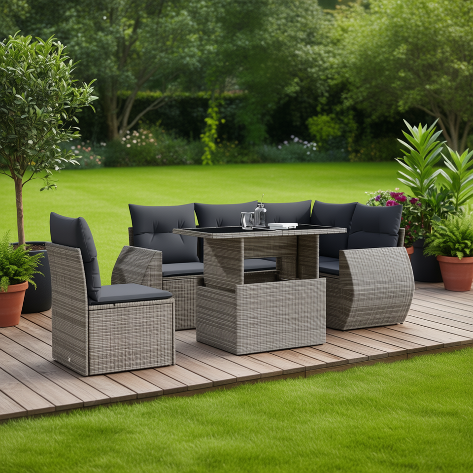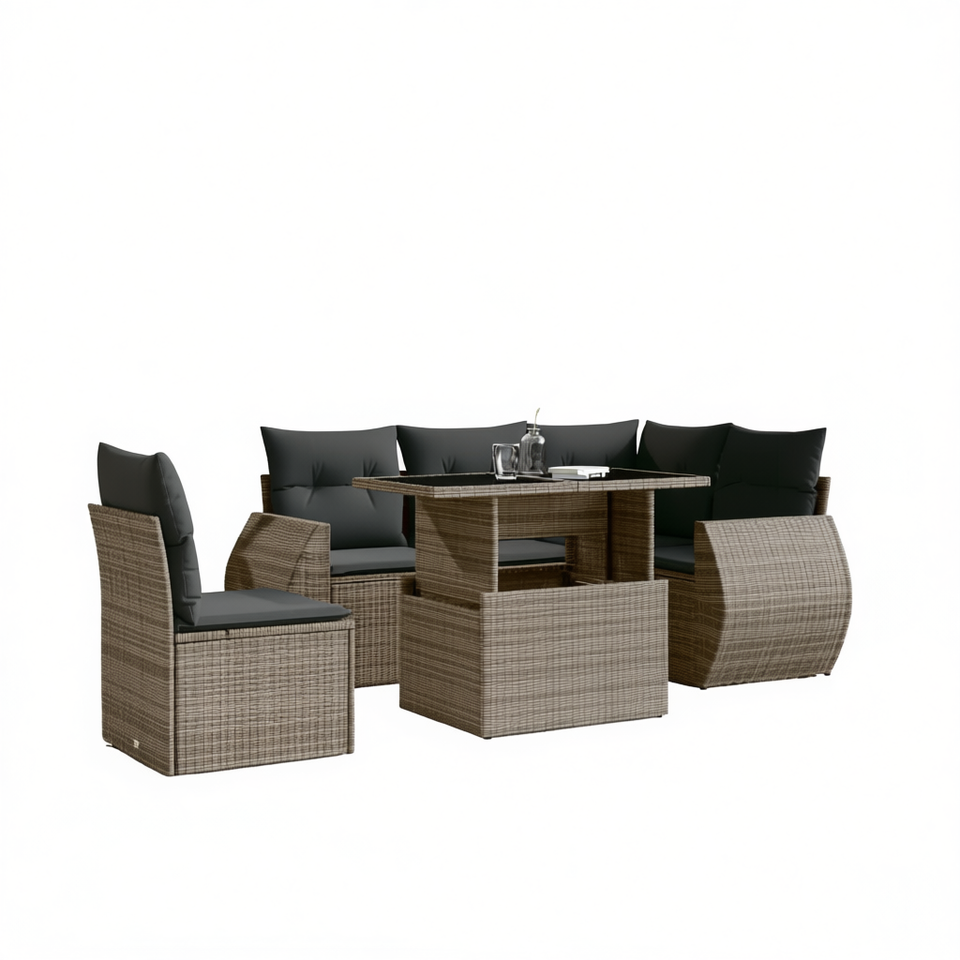 ชุดโซฟาหวายสีเทาเข้มสำหรับสวน 6 ที่นั่ง พร้อมเบาะรองนั่ง เฟอร์นิเจอร์กลางแจ้ง ดีไซน์ร่วมสมัย