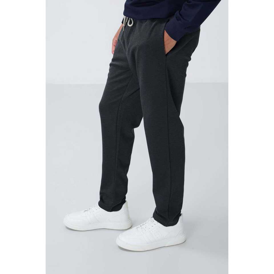 กางเกงวอร์มผู้ชายสีเทาเข้มเนื้อผ้ามีเท็กซ์เจอร์ ทรงมาตรฐาน ดีไซน์กระเป๋าแบบฝรั่งเศส รุ่น 82155