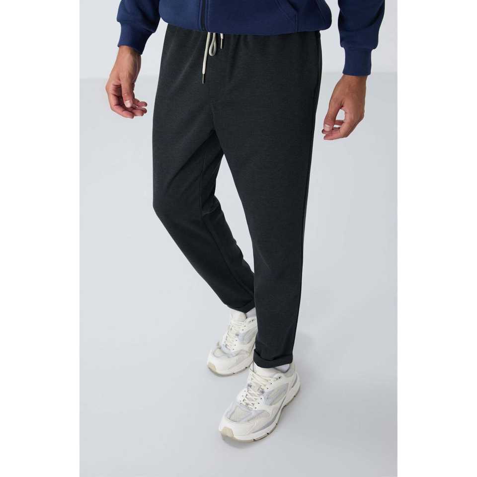 กางเกงวอร์มผู้ชายสีเทาเข้มเนื้อผ้ามีเท็กซ์เจอร์ทรงมาตรฐาน เอวยางยืด ระบายอากาศได้ดี สวมใส่สบาย