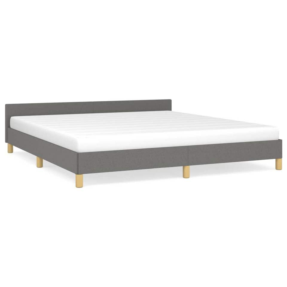 โครงเตียงหุ้มเบาะสีเทาเข้มพร้อมหัวเตียง