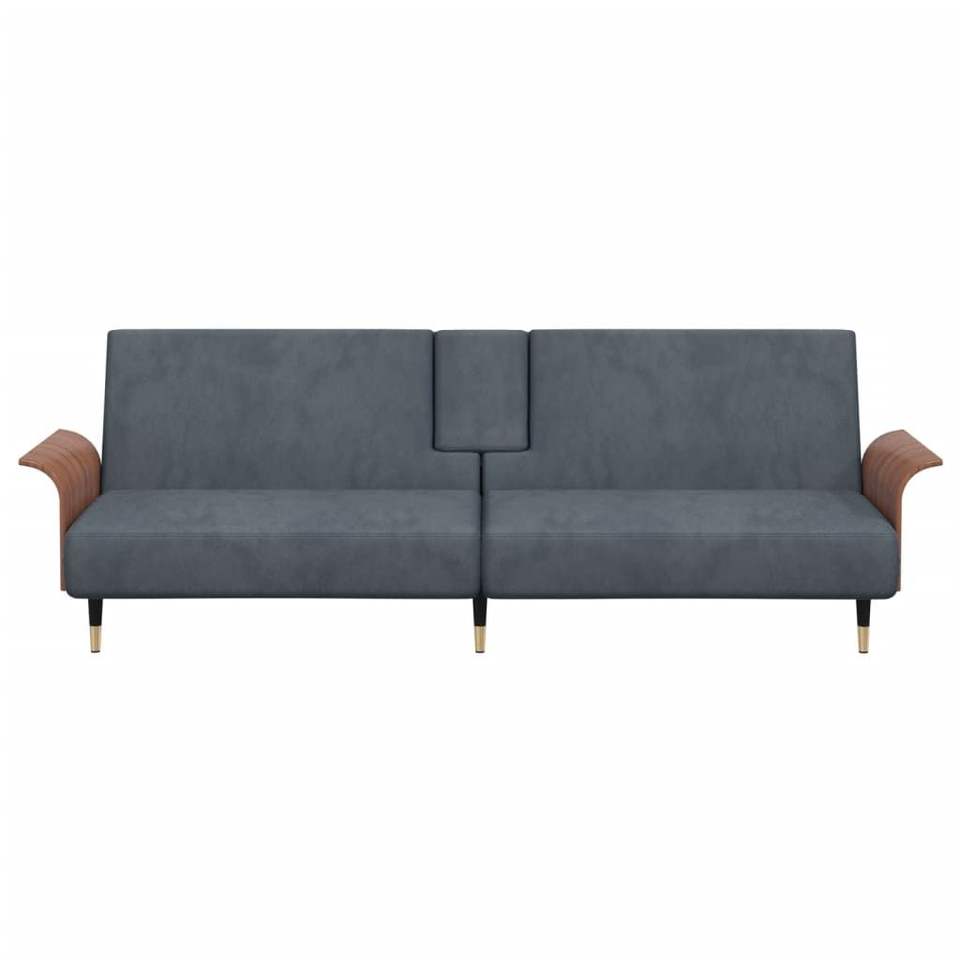 โซฟาเบดกำมะหยี่สีเทาเข้มขนาดใหญ่พร้อมโครงโลหะไม้อัด