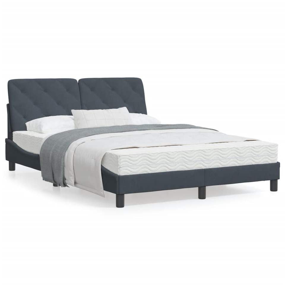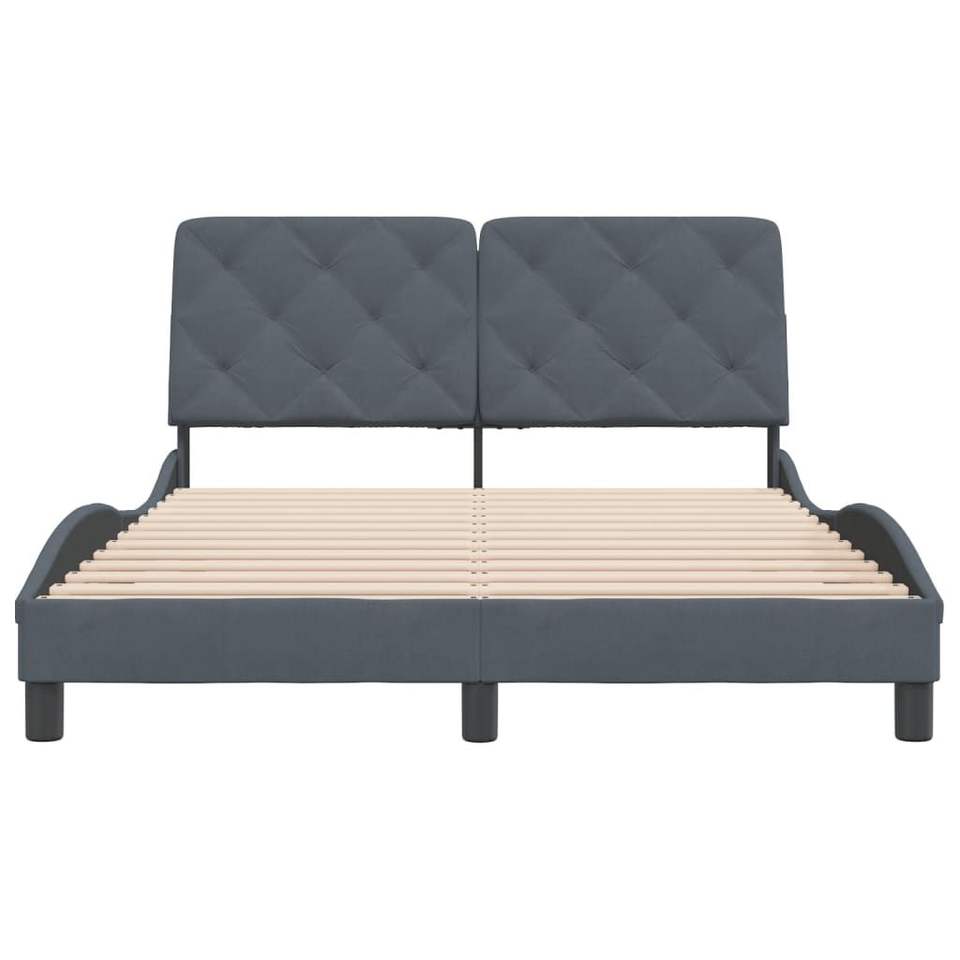โครงเตียงโลหะกำมะหยี่สีเทาเข้ม ไม้สนแท้ ไม้อัด เตียงคู่หุ้มเบาะ