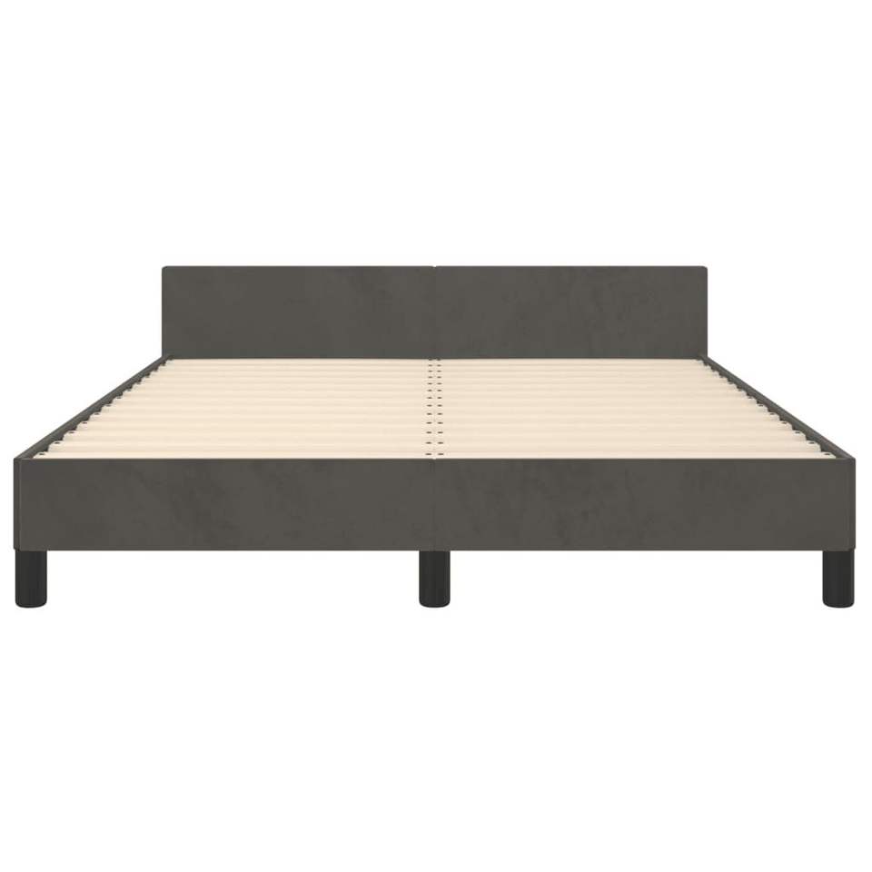 โครงเตียงหุ้มกำมะหยี่สีเทาเข้มพร้อมหัวเตียง ทำจากไม้อัดและวัสดุไม้แปรรูปที่ทนทาน