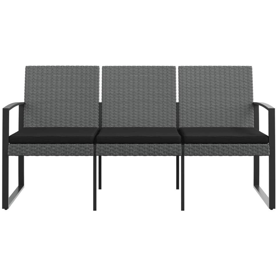 ม้านั่งสวน 3 ที่นั่ง สีเทาเข้มและสีแอนทราไซต์ ม้านั่งลานบ้านทันสมัยสำหรับการพักผ่อนกลางแจ้ง