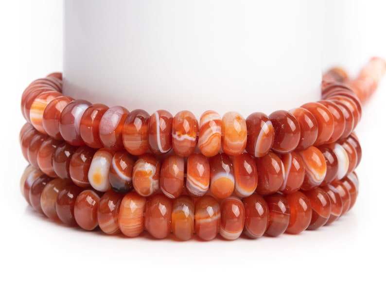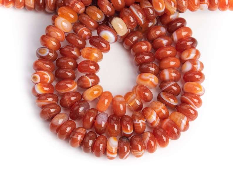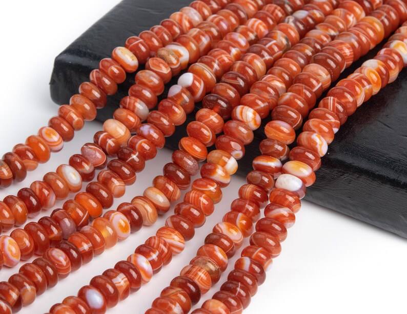 ลูกปัดหินอาเกตสีส้มแดงลายทาง สำหรับทำเครื่องประดับ สร้อยข้อมือ สร้อยคอ งานฝีมือ DIY