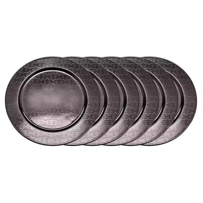 จานและจานสำหรับตกแต่งโต๊ะเครื่องชาร์จเหล็กสีดำชุบนิกเกิลสำหรับบ้านและงานแต่งงาน