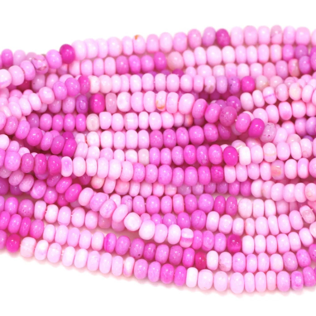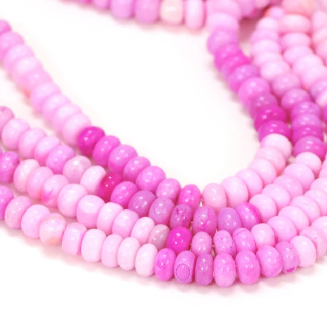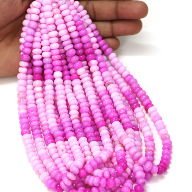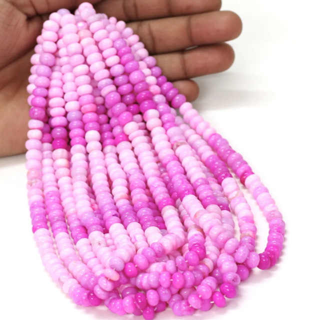 ลูกปัดโอปอลสีชมพูเข้มทรงรอนเดล AAA: งานฝีมือเครื่องประดับอัญมณีทำมือ