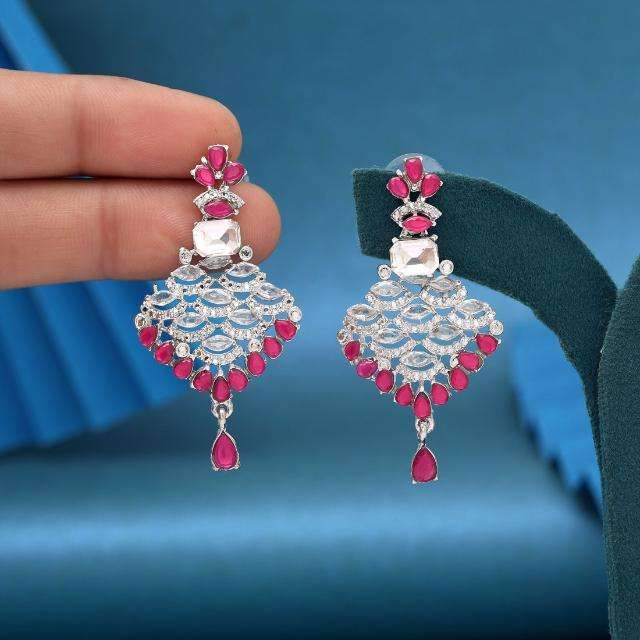 ต่างหูห้อยและพู่ทำด้วยมือสีชมพูเข้มชุดปาร์ตี้ทันสมัยสำหรับผู้หญิงและผู้หญิงวัสดุหลัก