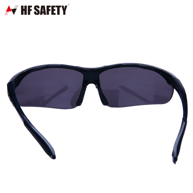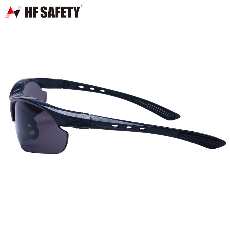 แว่นตานิรภัยป้องกันหมอกป้องกันการกระแทกวัสดุเลนส์โพลีคาร์บอเนตสีเข้มพร้อมกรอบป้องกันตาไนล่อน