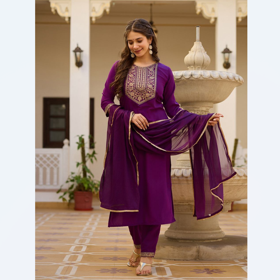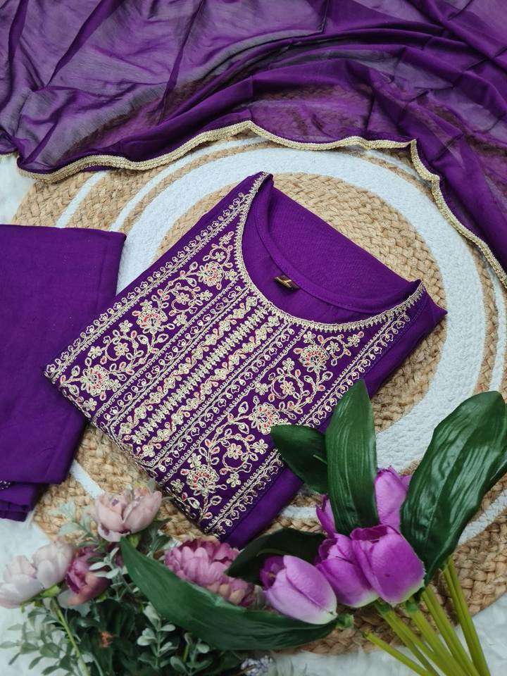 ชุดสูทซัลวาร์ปักลายสไตล์อินเดียและปากีสถานสำหรับผู้หญิงชุดเดรสออกแบบโดยดีไซเนอร์สำหรับงานปาร์ตี้และงานแต่งงานสีม่วงเข้ม