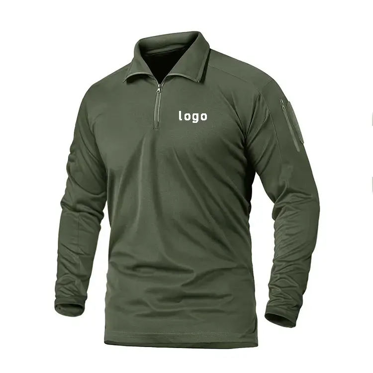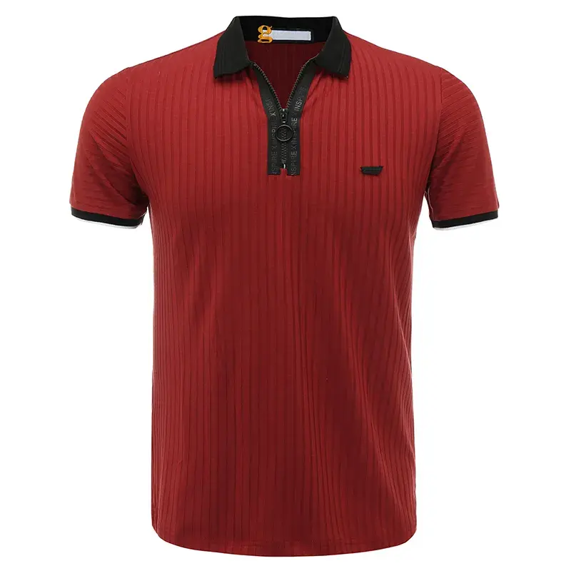 เสื้อโปโลผู้ชายมีซิปแขนยาวสีแดงเข้มเสื้อโปโลออกแบบและโลโก้ได้ตามต้องการสวมใส่สบายและระบายอากาศได้ดี
