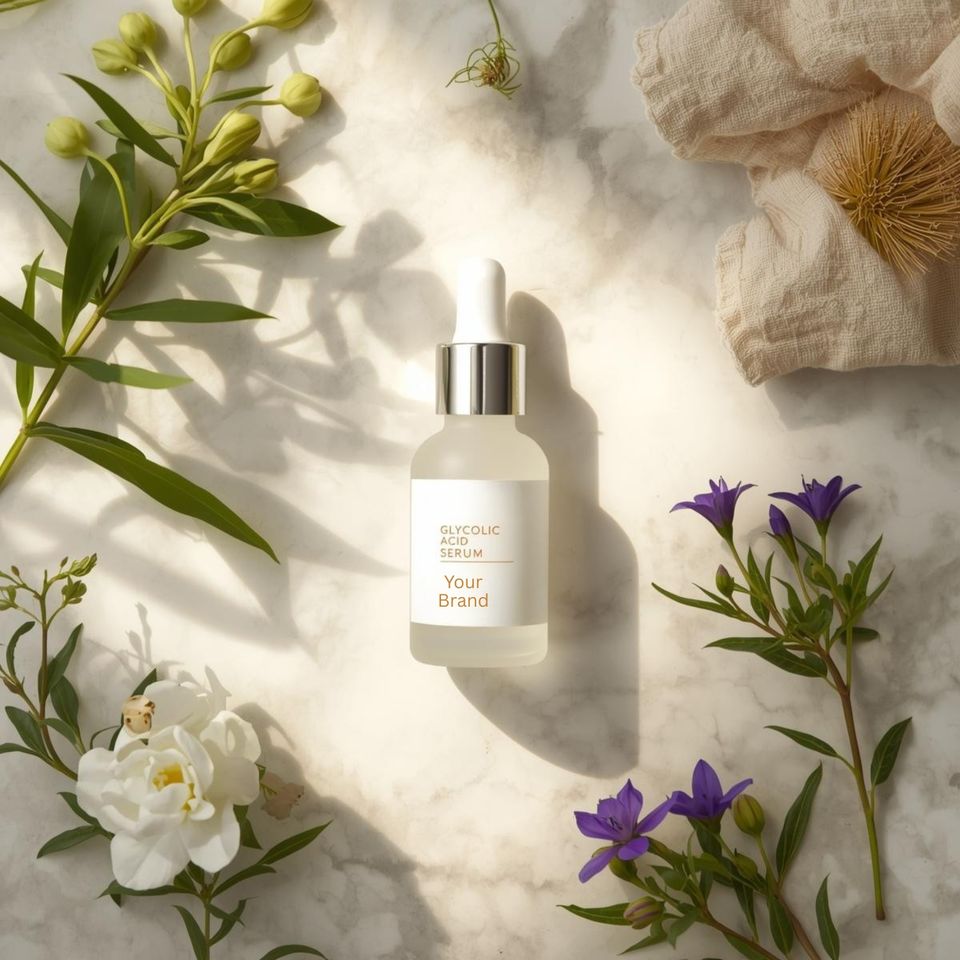 เซรั่มผลัดเซลล์ผิวหน้าด้วยกรดไกลโคลิกสำหรับรอยสิว รอยแตกลาย ฝ้า กระ จุดด่างดำ ผิวเรียบเนียน (รับผลิตแบรนด์ส่วนตัว)