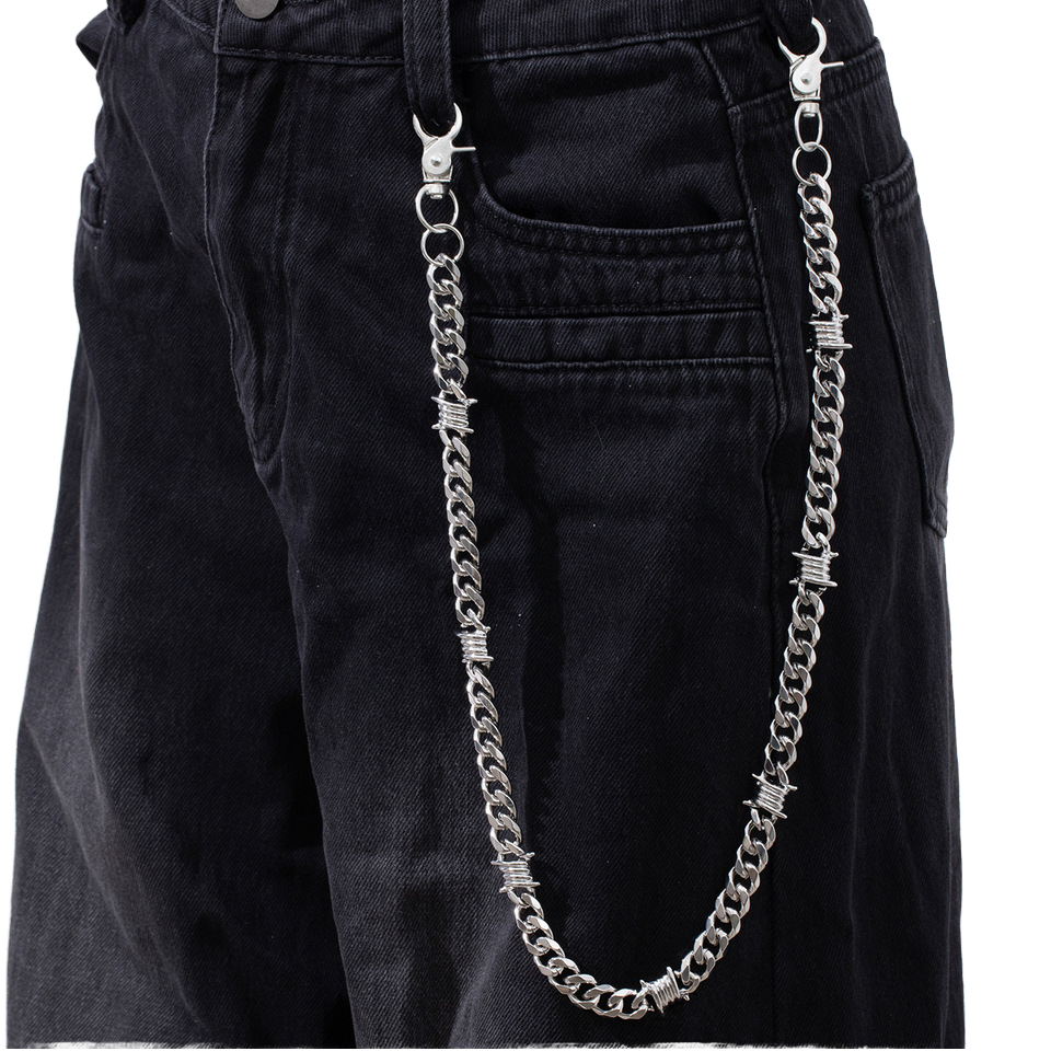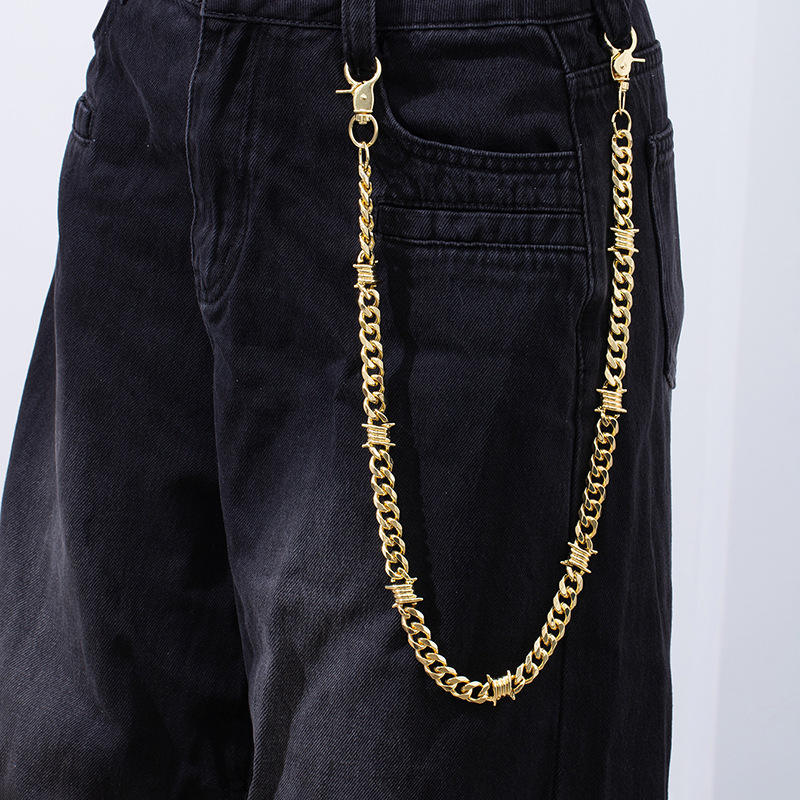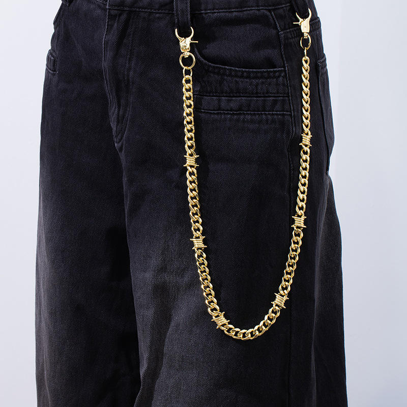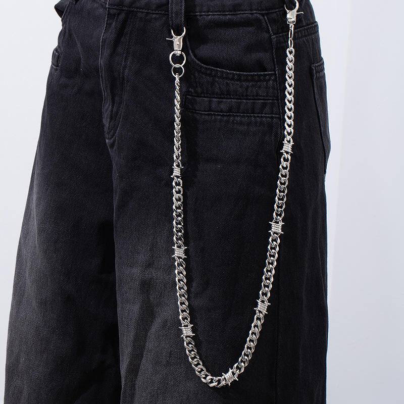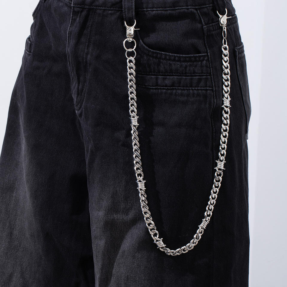 โซ่เอวสูงสไตล์สตรีทสีดำสำหรับผู้ชายสร้อยคอยีนส์หนามหนามสแตนเลสเครื่องประดับแฟชั่นสำหรับผู้ชาย