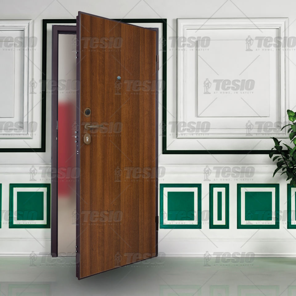 ประตูตกแต่งไม้วอลนัทสีเข้ม WCL005 - ความปลอดภัยขั้นสูงสุด ป้องกันการโจรกรรม พร้อมฉนวนกันเสียง 40dB รับรองโดย CE