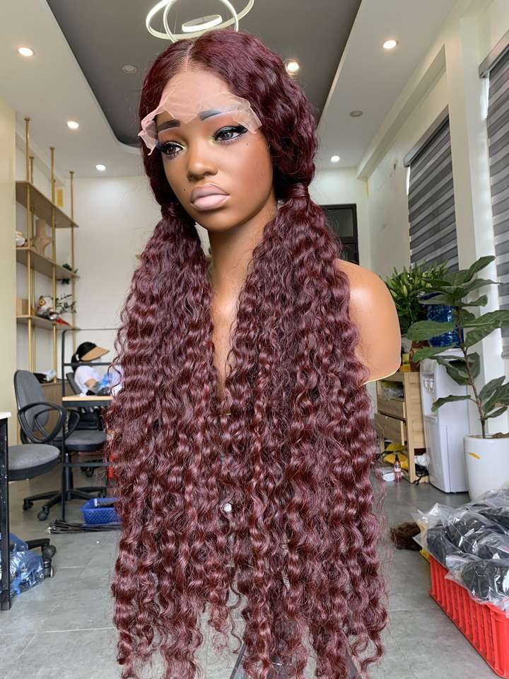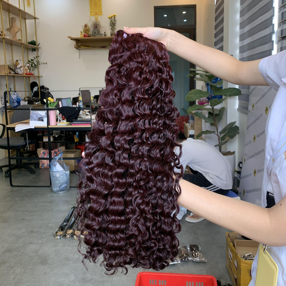วิกผมสีไวน์เข้มแบบอิตาเลียน เวอร์จิ้น เรมี แฮร์ เอ็กซ์เทนชั่น ไม่ต้องใช้กาว จัดเรียงเกล็ดผม ผมแท้เวียดนาม แบบเย็บสองชั้นด้วยเครื่องจักร