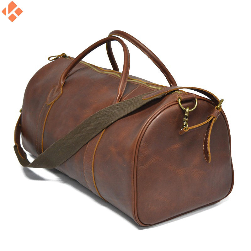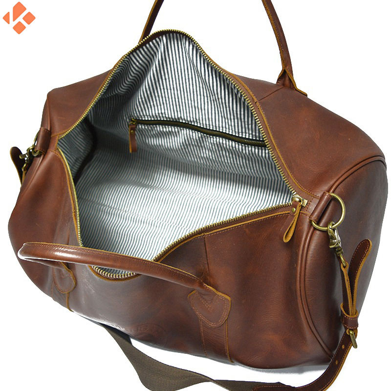 กระเป๋าเดินทางหรูสีน้ำตาลเข้ม, กระเป๋าหนังวัวแท้กระเป๋าดัฟเฟิลสำหรับผู้ชายและผู้หญิงความจุเยอะ