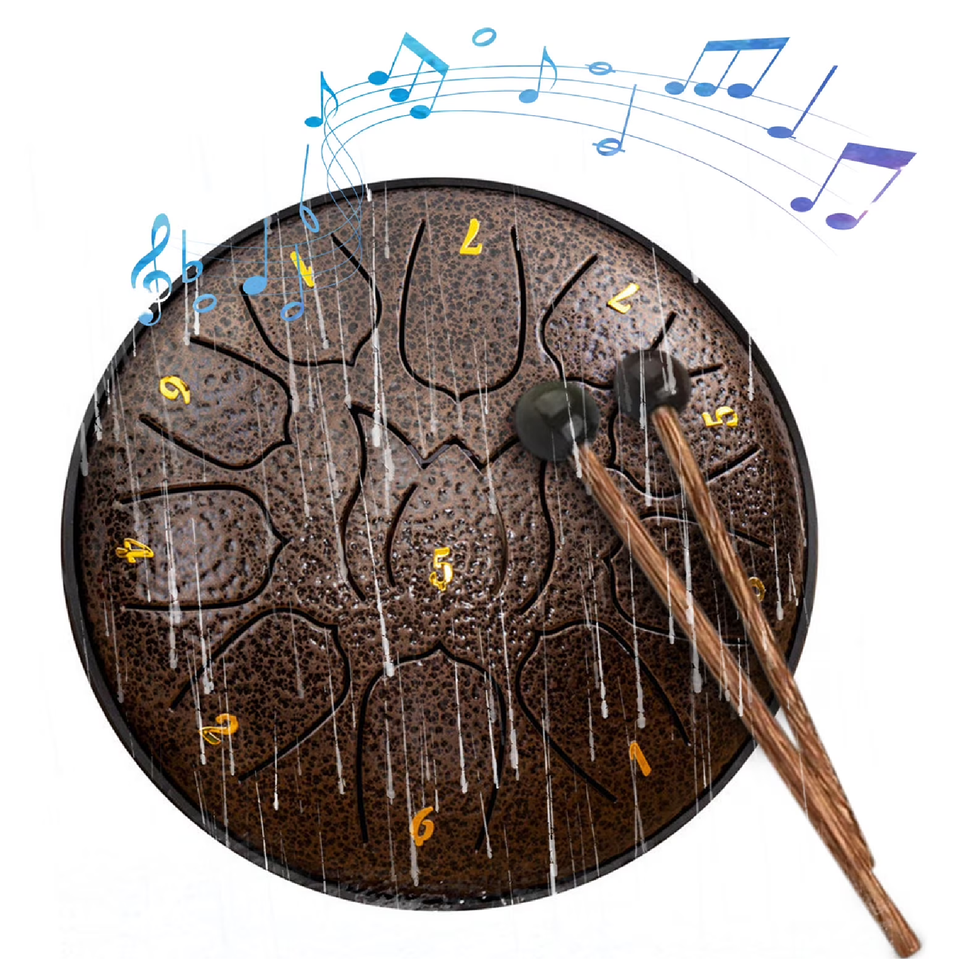 Dark green steel tongue drum, C Major 13 notes, melodic percussion for music education, with mallets available at wholesale