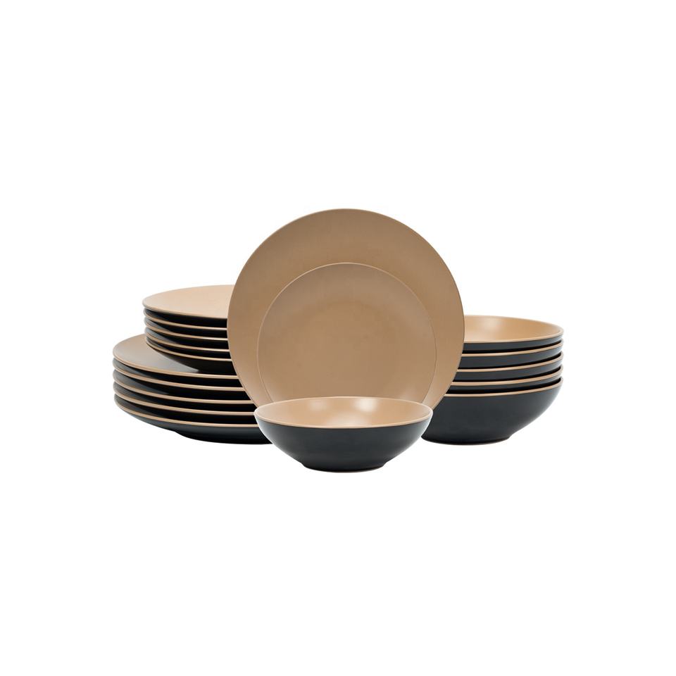 ชุดจานชามเซรามิกสโตนแวร์สีเบจเข้ม ดีไซน์เรียบหรู พร้อมแก้วกาแฟ ชุดอาหารเย็นใช้งานได้จริง