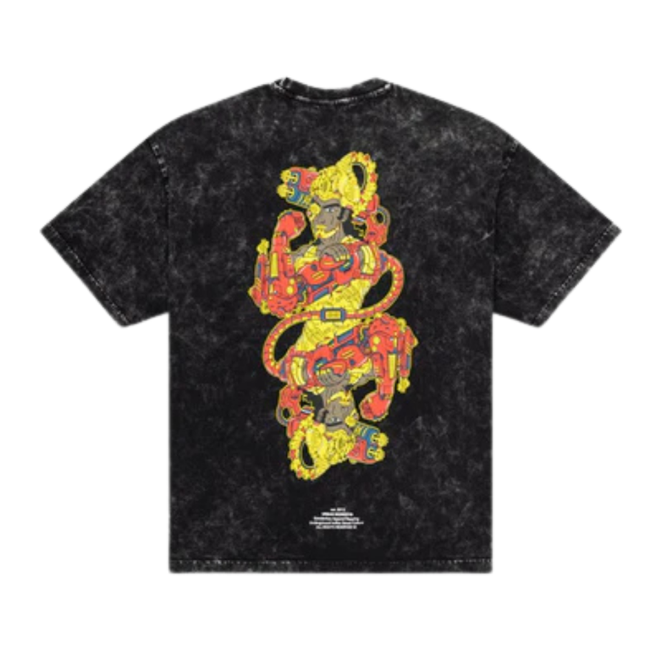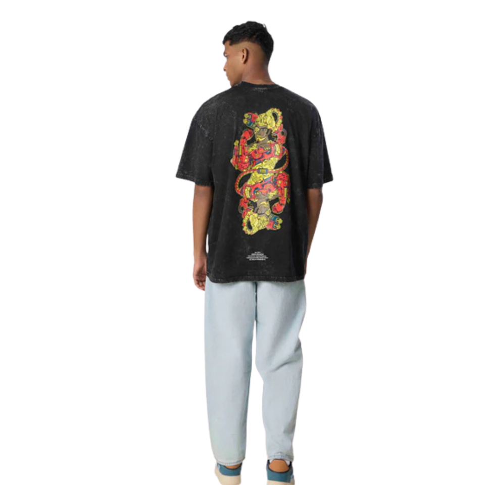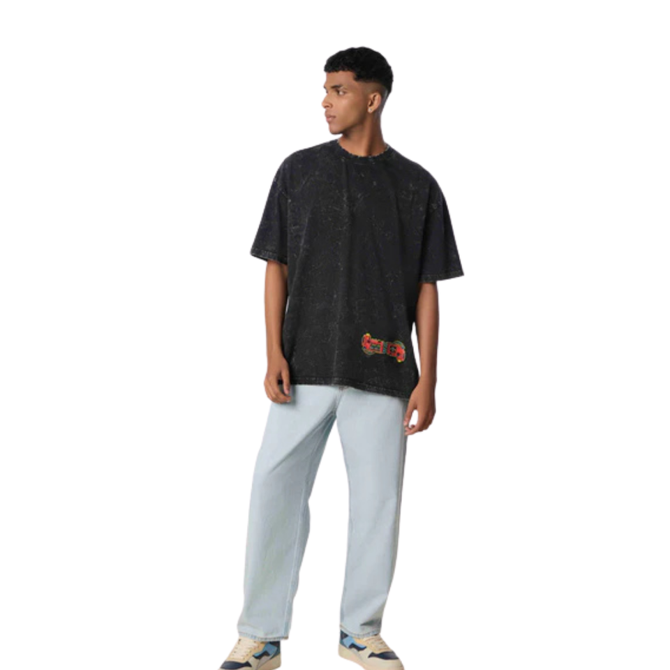เสื้อยืดผู้ชายทรงหลวมสีดำเข้ม ผ้าถักเนื้อนุ่ม 100% ผ้าฝ้าย สไตล์วินเทจ ดูเป็นทางการ ระบายอากาศได้ดี เหมาะกับการสวมใส่ในเมือง