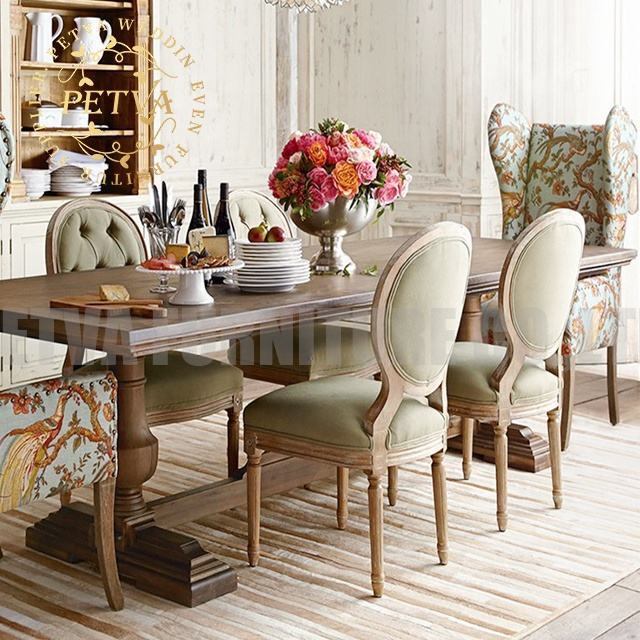 ชุดโต๊ะรับประทานอาหารฟาร์มจัดเลี้ยงไม้ Darkwood เก้าอี้ 6 ตัวเฟอร์นิเจอร์ห้องรับประทานอาหารสําหรับงานอีเว้นท์
