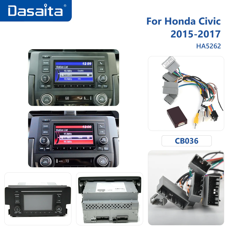 วิทยุติดรถยนต์ Dasaita พร้อมระบบ Carplay หน้าจอ Android ระบบนำทาง GPS เครื่องเล่น DVD สำหรับรถยนต์ Honda Civic SI Type R ปี 2015-2022 ชุดเครื่องเสียงติดรถยนต์