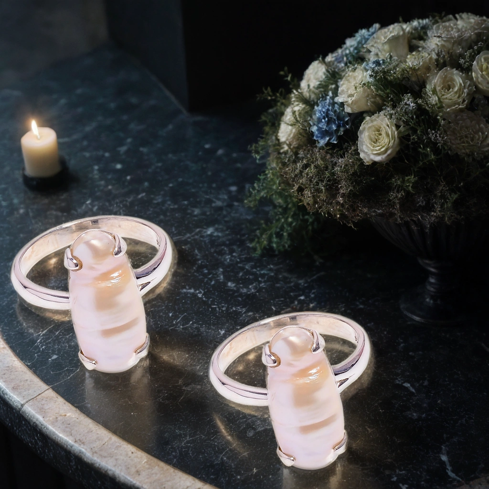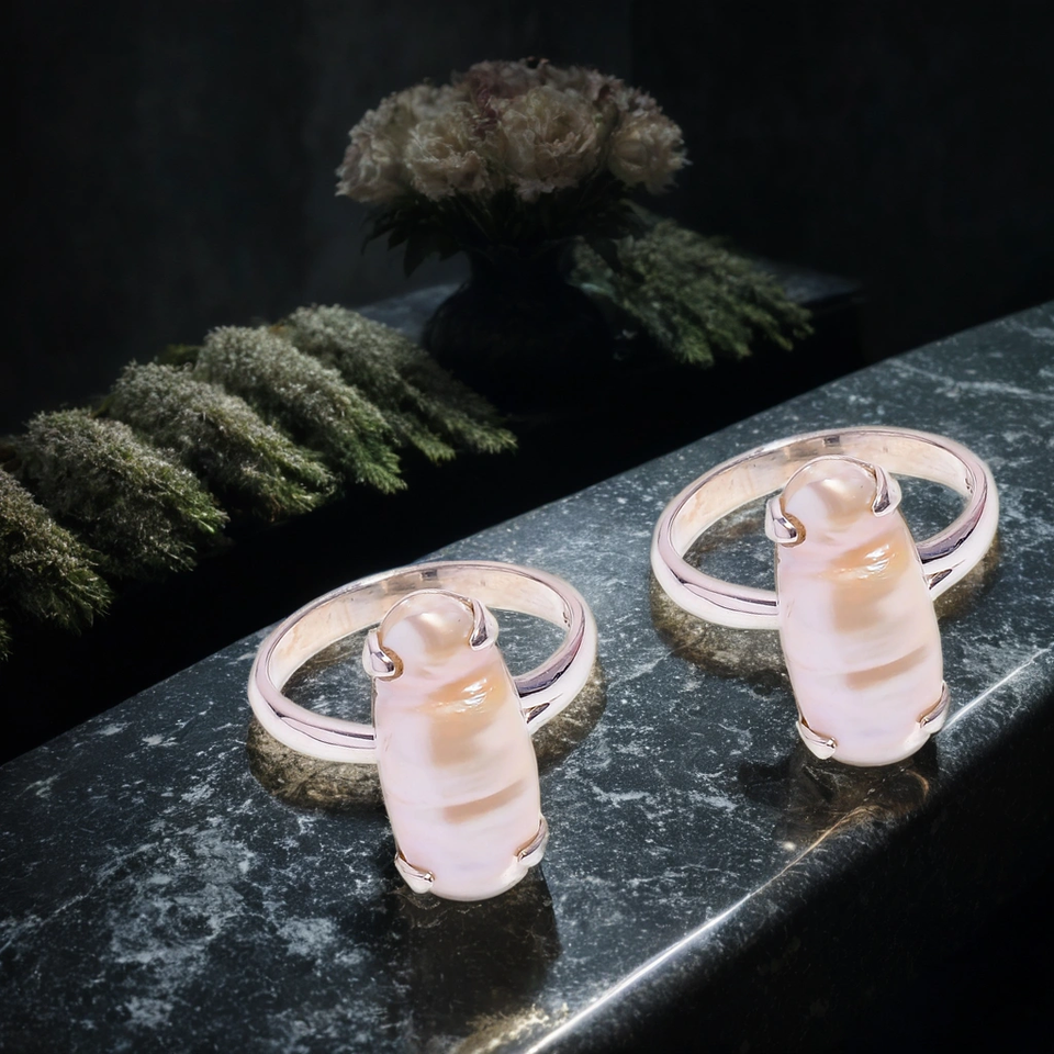 ไข่มุกบิวะธรรมชาติ งานแฮนด์เมด เงินแท้ 925 ประดับพลอย ระดับเกรด งานสไตล์ชาติพันธุ์ ไซส์ US 9.5 สำหรับงานหมั้นและงานแต่งงาน