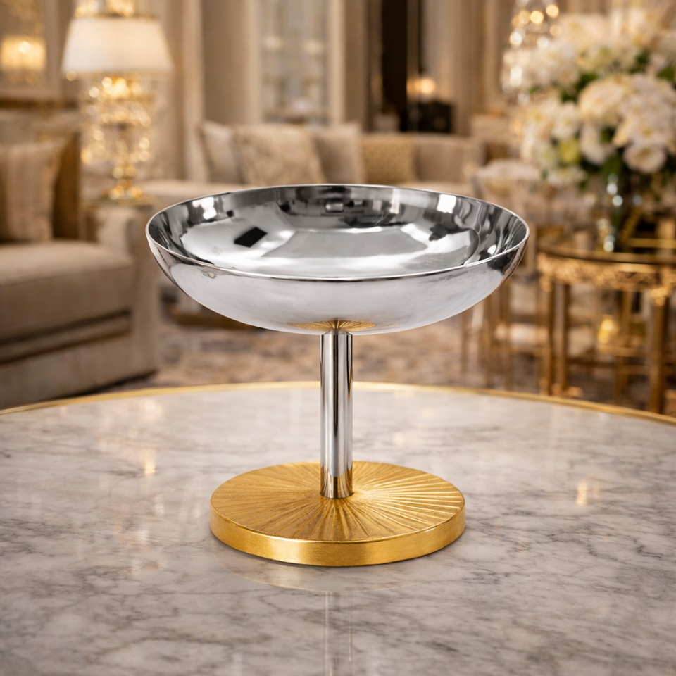 ชามใส่ผลไม้สีเงินและสีทองสำหรับโรงแรมหรู ชามเสิร์ฟแบบโบราณ ราคาขายส่ง