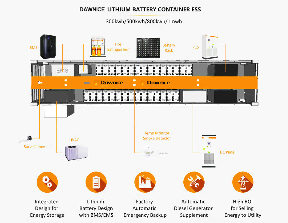 ตู้เก็บพลังงานอุตสาหกรรมและพาณิชย์ Dawnice ENERGY แบตเตอรี่ Lifepo4 215kw 372kw