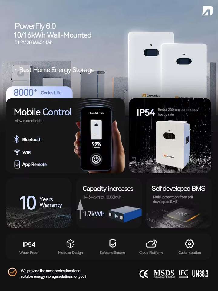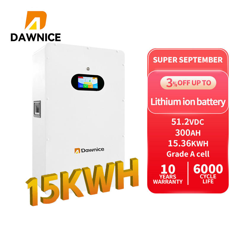 แบตเตอรี่ลิเธียมแบบชาร์จได้ Dawnice Solar 48V 15kWh 300Ah ชุดแบตเตอรี่ LiFePo4 เคลื่อนย้ายง่ายด้วยล้อ