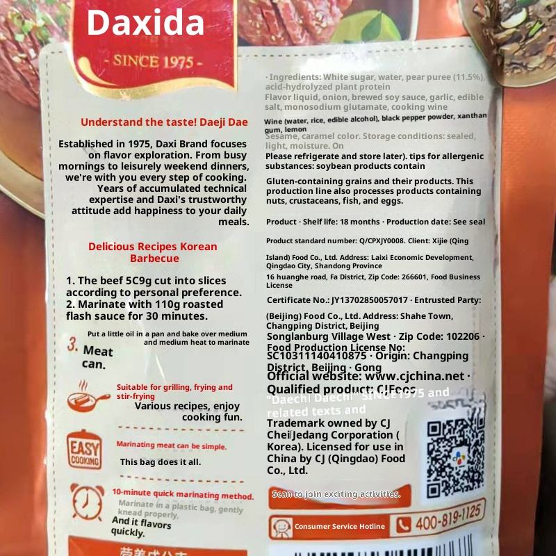 Daxida ซอสบาร์บีคิว110กรัมถุงหมักหมูเนื้อหมักปีกบาร์บีคิวบ้านสไตล์เกาหลี