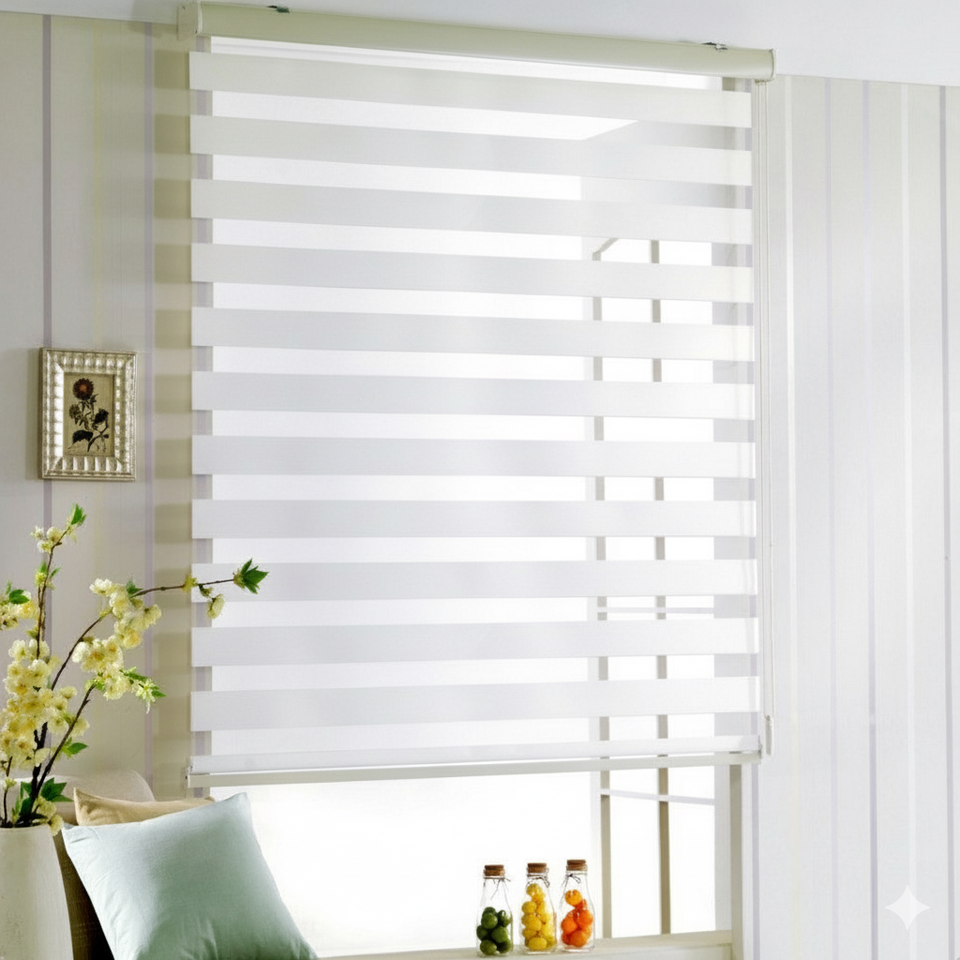 ม่านม้วนแบบซีบร้า ควบคุมแสงได้ทั้งกลางวันและกลางคืน ม่านหน้าต่างสั่งทำพิเศษ ผู้ผลิตจากตุรกี จำหน่ายผ้าม่านและผ้าคลุม