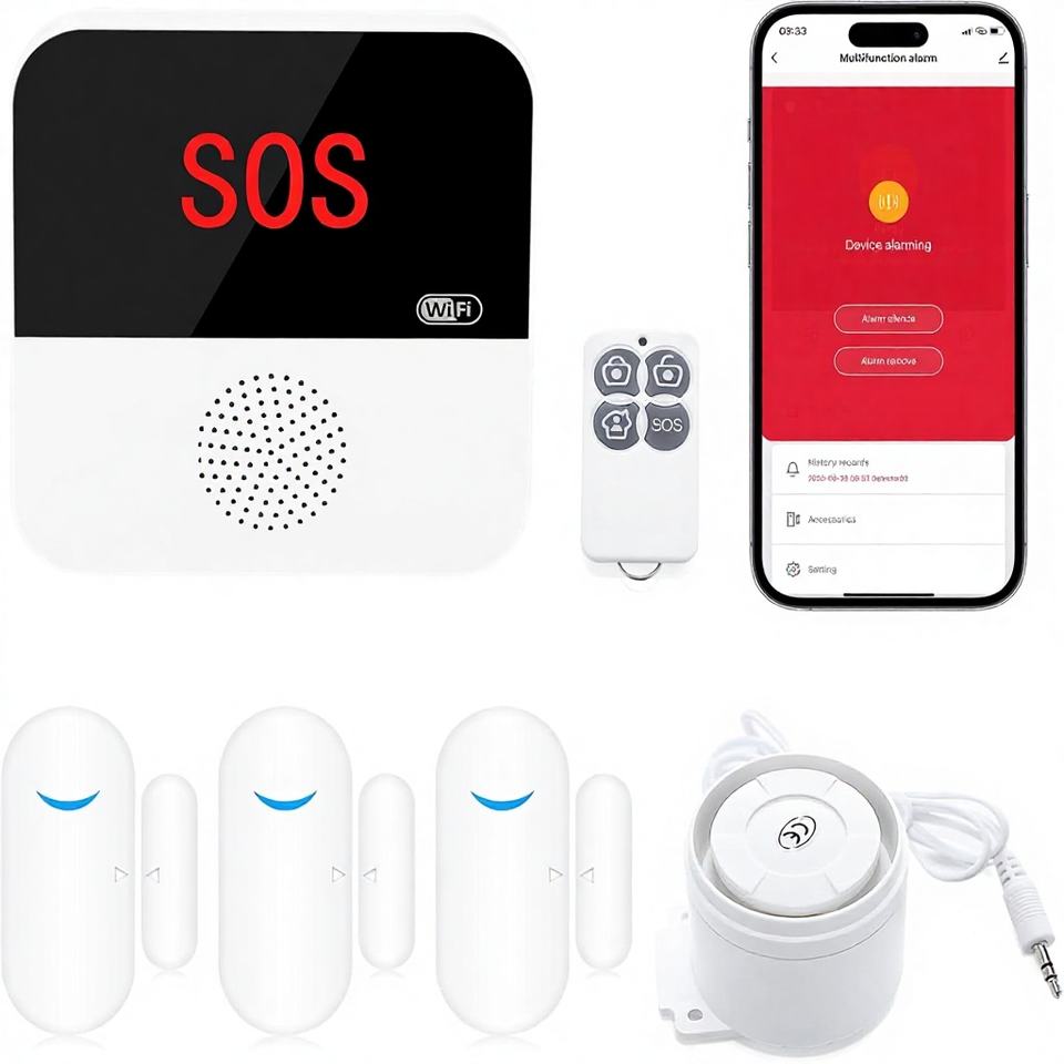 ระบบเตือนภัยประตูไร้สาย Daytech 24GHz ชุดอุปกรณ์รักษาความปลอดภัยบ้านอัจฉริยะ 6 ชิ้น (1 สถานีฐานสัญญาณ 3 เซ็นเซอร์ประตู/หน้าต่าง 1 กุญแจรีโมท 1 ชิ้น)