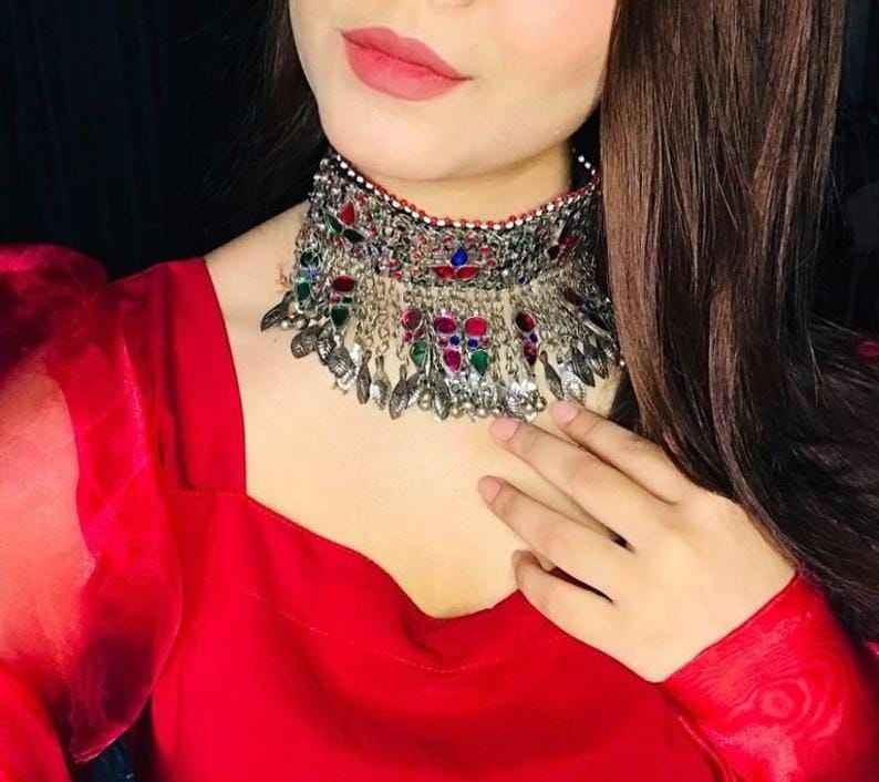ชุดเครื่องประดับเจ้าสาวชนเผ่าอัฟกันสุดอลังการ ต่างหูแบบจุ๊มก้าสำหรับงานแต่งงานของผู้หญิง