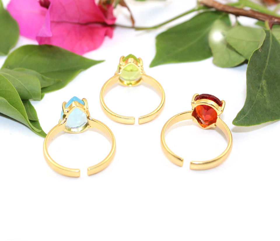 แฟชั่นแวววาวสีแดงโกเมนไฮโดรควอตซ์ทรงลูกแพร์8X12มม. แหวนชุบทองทันสมัยสำหรับผู้หญิงเครื่องประดับขายส่ง
