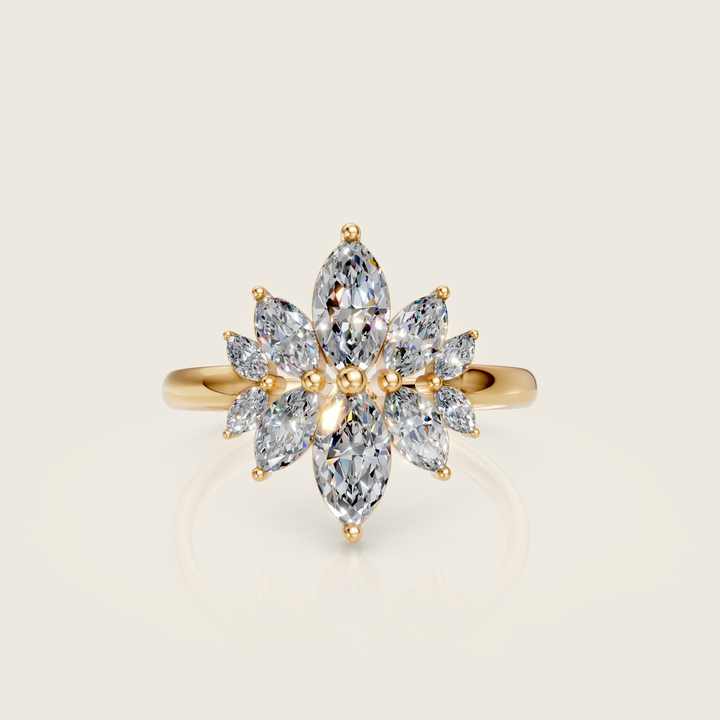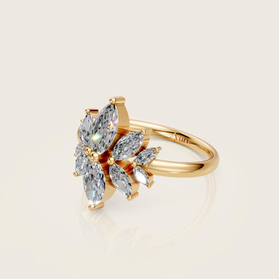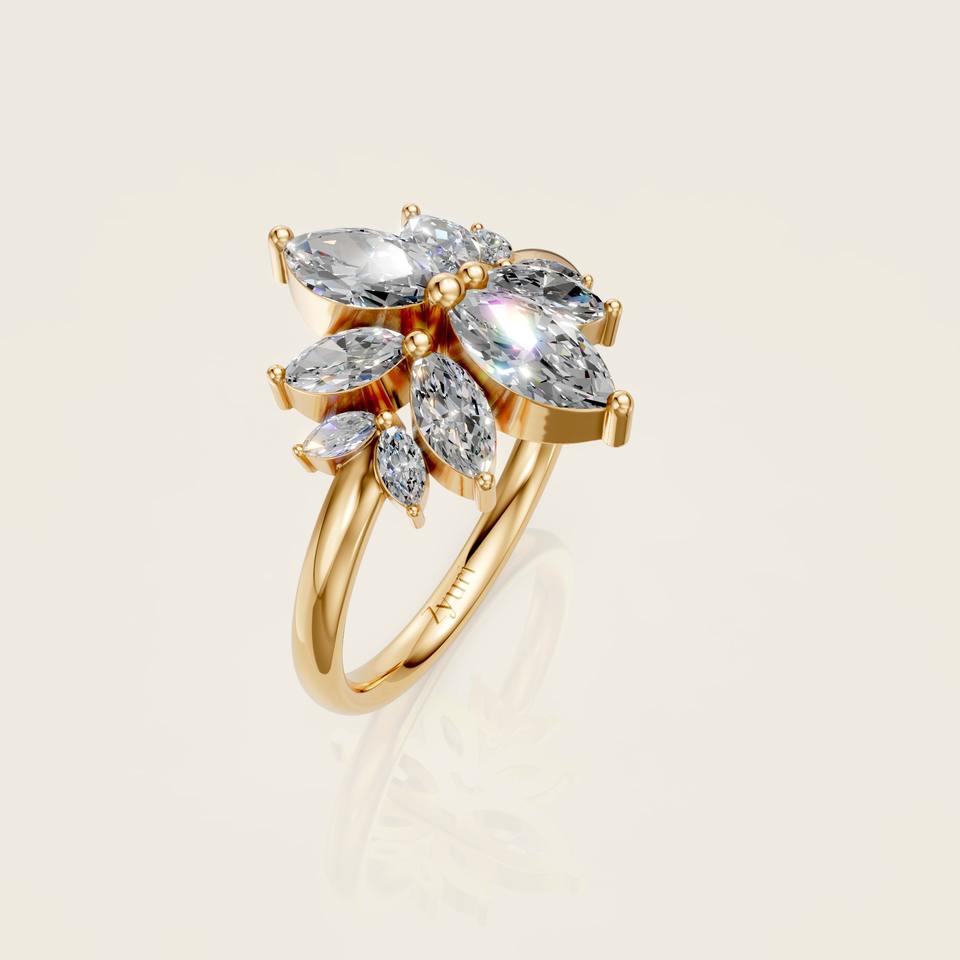 แหวนหมั้นและแหวนแสดงความรักสุดหรู ดีไซน์ดอกไม้ ประดับเพชรทรงมาร์ควิส ระยิบระยับ สำหรับผู้หญิง
