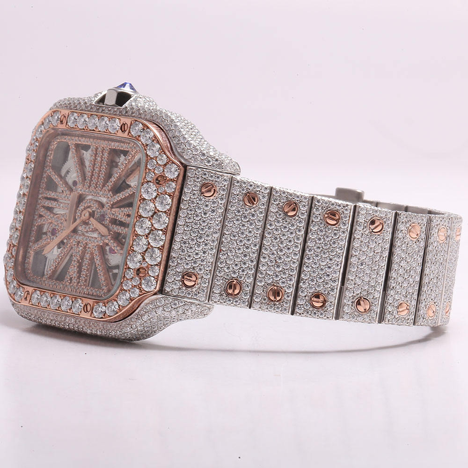 นาฬิกากลไกอัตโนมัติทำจากสเตนเลสสตีลประกายเพชรมอยส์ซอไนท์สุดหรูประกายระยิบระยับความแม่นยำที่เหนือกว่า
