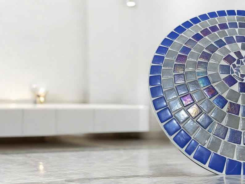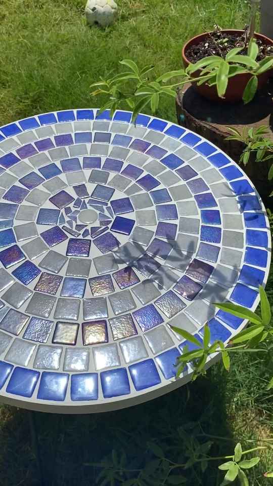 โต๊ะข้างโมเสกพราว: ศิลปะสีรุ้ง-โต๊ะกาแฟสีฟ้า-โต๊ะข้าง-ตกแต่งห้องนั่งเล่น-ของขวัญ