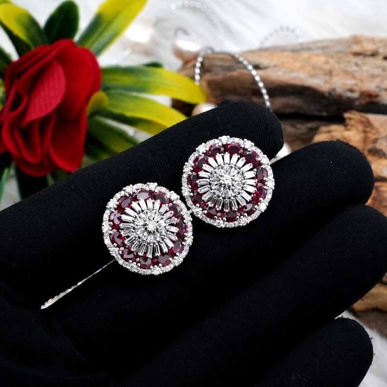 คีย์เวิร์ด:ต่างหูทองคำขาวทับทิม14K สีชมพูแวววาวกลมกลืนกับแสงที่หรูหรา